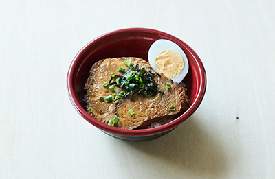 お米の上には地元の老舗八木澤商店の醤油と岩手県産の豚肉を使った、ホロホロでジューシーな豚角煮をこれでもかというぐらいたくさん乗せています! 農家の皆さんが一生懸命育てたお米、ぜひご賞味ください!