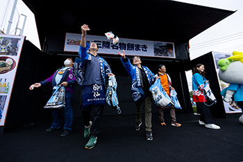 | 内容 | まかれた餅の中に「当たり券」が入っていた場合、記載された指定のブースにて賞品を引き換え ※「当たり券」引き換えの有効期限は19:00まで。 |