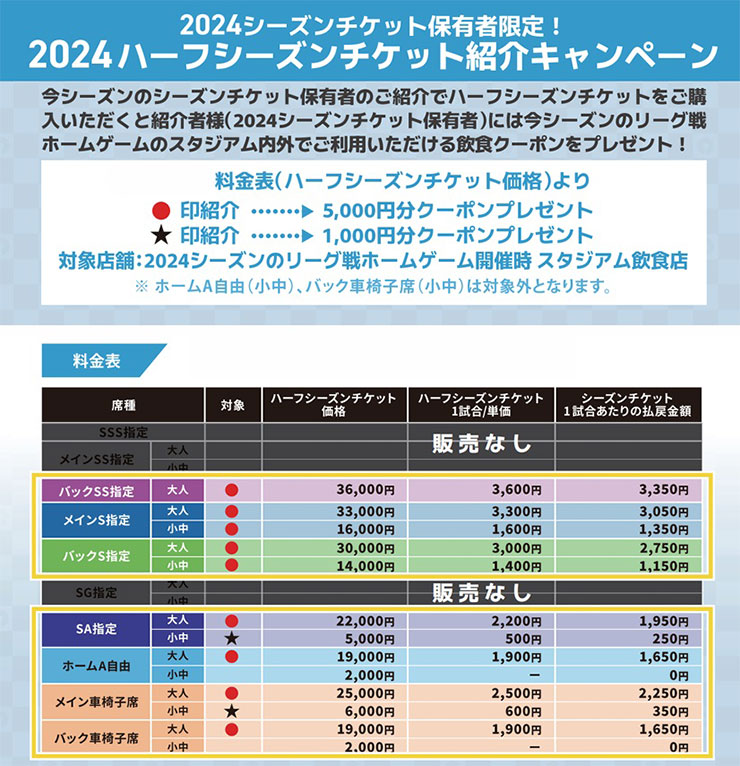 キャンペーンの詳細は「2024ハーフシーズンチケット販売(抽選)」特設ページをご確認ください