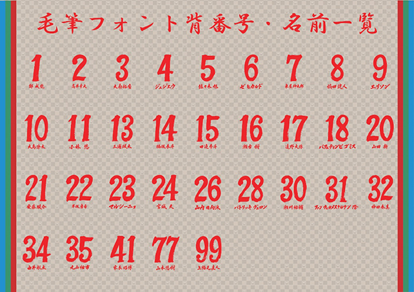 毛筆フォントは川崎大師において、この一戦のために全選手分を浄書いただきました。