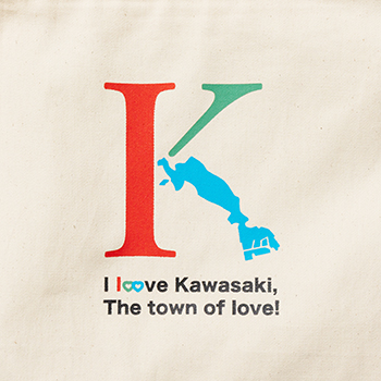 アイコニックな「K」はKAWASAKIの「K」。「K」のグラフィックには、川崎市のブランドメッセージでも用いられている光の三原色と地図を盛り込み、川崎市民がお馴染みのフレーズを「I love Kawasaki The town of love」と表現しています。