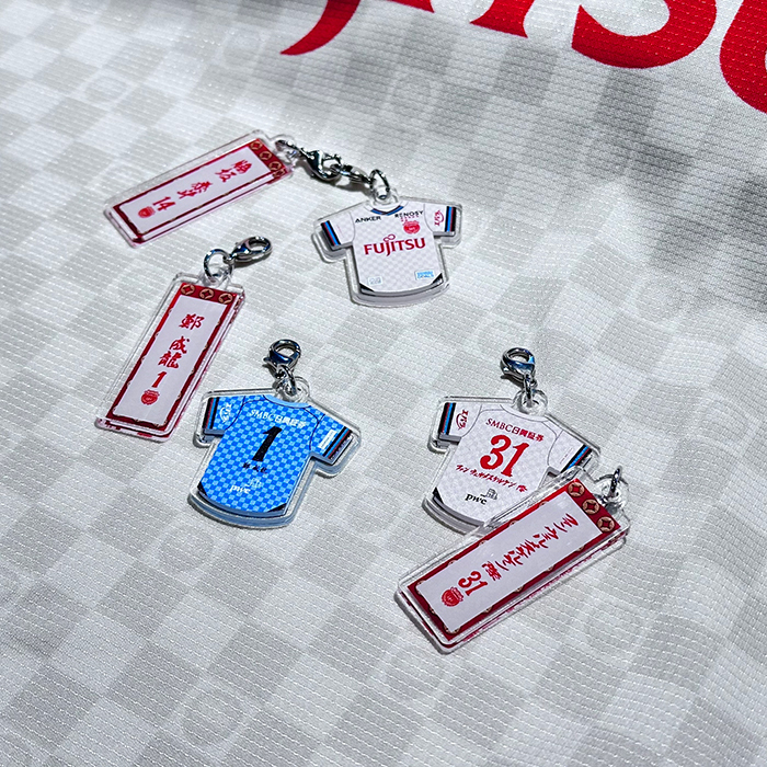 人気のユニフォームデザインチャームと千社札が「2024川崎カルチャーユニフォームデザイン」になってセットに!! バッグにはもちろん、ポーチなど小物にもつけやすいサイズ感です。