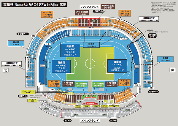 ◇席割図には緩衝地帯が含まれますが、天皇杯2回戦では、緩衝地帯は設置しません。