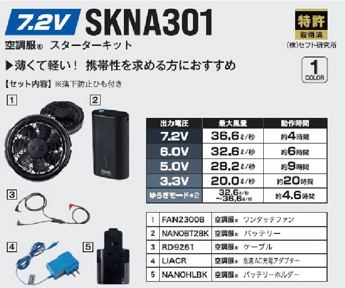 | 注意事項 | ・火気に弱いため、火気を取り扱う場所では着用しないでください。 ・専用の機器を必ずご使用ください。他社製品と組み合わせて使用した場合に発生する故障や事故等につきましては、責任を負いません。ご了承ください。 ・この商品は、株式会社セフト研究所・株式会社空調服の特許および技術を使用しています。 ・「空調服」は、株式会社セフト研究所・株式会社空調服のファン付きウェア、その付属品、およびこれらを示すブランドです。 ・「空調服」「DC空調服」ロゴは、株式会社セフト研究所・株式会社空調服の登録商標です。 ・その他の商標及び登録商標は、それぞれの所有者の商標および登録商標です。 |