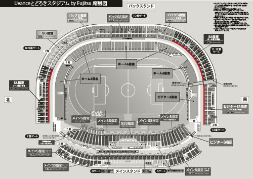 | 対象エリア | SA指定、ビジターSA指定の最前列(赤い部分) |