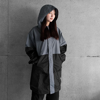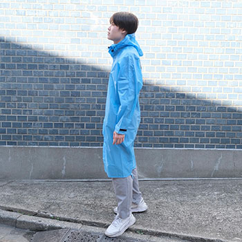 ツバ付きフードで快適さを追求し、機能を踏襲した袖付きのレインポンチョです。 高い耐水性やフード部分のツバ付き・ハイネック仕様で顔まわりをしっかり防御してくれるので、フェスやアウトドア、レインシーンにおすすめです!