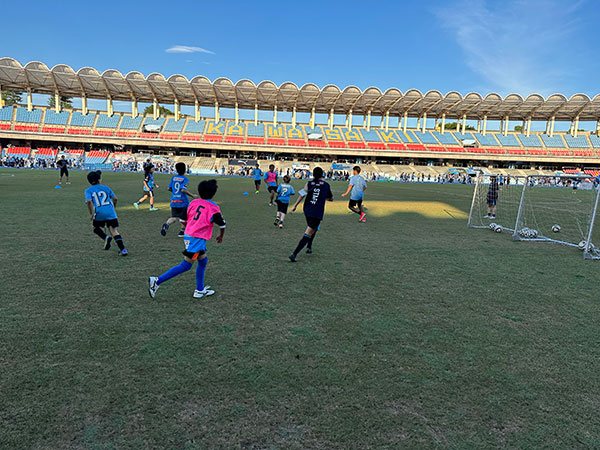 等々力のピッチでスクールコーチたちと一緒にサッカーを楽しみましょう!!