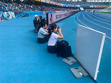 今回は、バックスタンド側での実施となります。カメラ、望遠レンズの貸し出し含め、Nikonさんに全力でサポートしていただきます。等々力での最高の瞬間をシャッターで!!