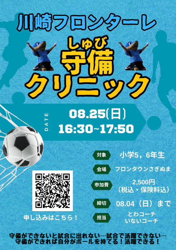 川崎フロンターレ「8/25(日)守備クリニック」係
