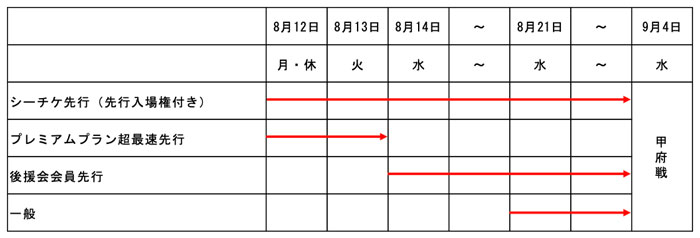 本試合は先行入場権付きの「☆ホームA自由」購入者を対象に事前申込制の列抽選を行います。詳細は後日クラブ公式サイトでお知らせいたします。