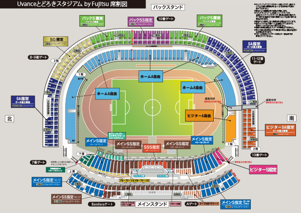 ビジターS指定、ビジターSA指定、ビジターA自由がビジターサポーターのエリアとなります。