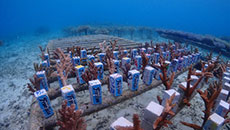 ◇選手直筆!サンゴ植付用台座展示、恩納村PR・取り組み紹介