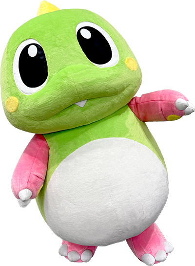 『バブルボブル』『パズルボブル』シリーズの主人公バブルンがU等々力に来場! 有野課長風ふろん太と一緒にマスコット撮影会に登場します!