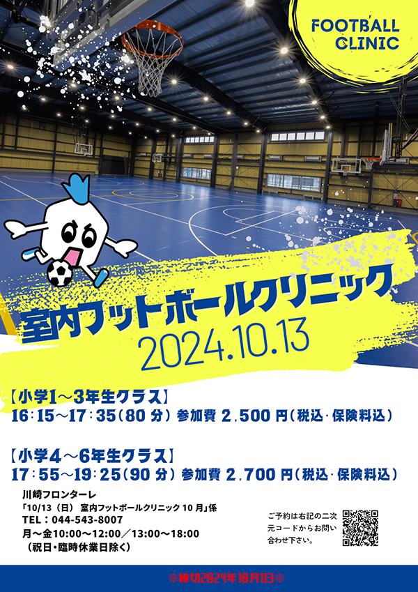 川崎フロンターレ「10/13(日) 室内フットボールクリニック 10月」係