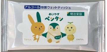 ②体内時計ピッタリ選手権参加賞エントリーにご協力いただくと、先着600名様に明治安田マスコットキャラクターの「ペンタン・うさりん・かめろん」除菌ウェットティッシュをその場でプレゼントいたします。