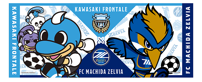 川崎フロンターレマスコットとFC町田ゼルビアマスコットのゼルビーくんがデザインされたフェイスタオルになります。