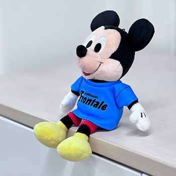 ちょこんとかわいいお座り姿のミッキーマウスがフロンターレカラーのウェアを着用して登場!!