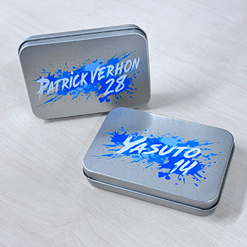 ありそうでなかったブリキケース。“Paint it Blue”をイメージしたデザインの手ガチャグッズになります。