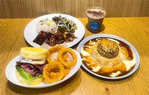 ①バターライスon ハンバーグ ~たっぷり FRO ソース~:1,200円(税込)