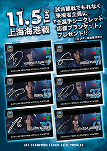 ※詳細は『11/5 上海海港「チケット販売(全選手シークレット応援ブランケット付きチケット)」のお知らせ』をご確認ください。