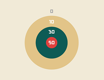 1人3球ボールを蹴り、蹴ったボールがついた場所の得点を合計。 |