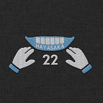 ハヤの特徴である“マウスピース”とグローブをロゴにして刺繍したパーカーです。