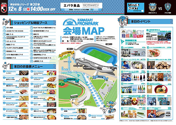 | 内容 | 川崎市、および川崎人権啓発活動地域ネットワーク協議会による啓発活動を実施します。子どもの権利に関するアンケートへ答えた方に川崎フロンターレデザインのノートが入ったオリジナルグッズセットをプレゼント また、スタジアム場内には「人KENまもる君」「人KENあゆみちゃん」が登場予定です!