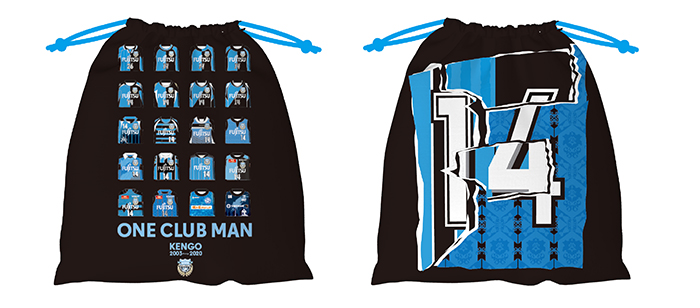 ケンゴが過去に着用したユニフォームをメインモチーフにデザインした巾着です。