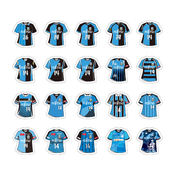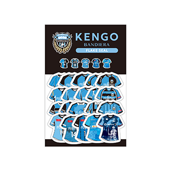 ケンゴが過去に着用したユニフォームをメインモチーフにデザインしたフレークシールです。好きなシーズンのユニフォームをスマホの裏に挟み込んだり、PCなどに貼ったりして楽しめます!!