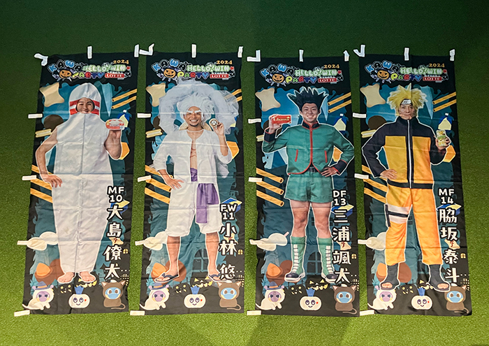| 注意事項 | ※内容物の『2024「KAWAハロー!ウィンPARTY」のぼり旗』は雨天時に掲出されていたものが含まれます。汚れや傷・ほつれ等があるものもございますので、予めご了承ください。また、棒は商品に含まれません。運が良ければ選手直筆サイン入りグッズが当たります!! |