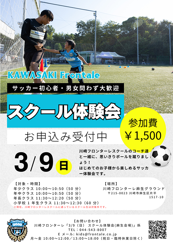 川崎フロンターレ「3/9(日)スクール体験会(麻生会場)」係