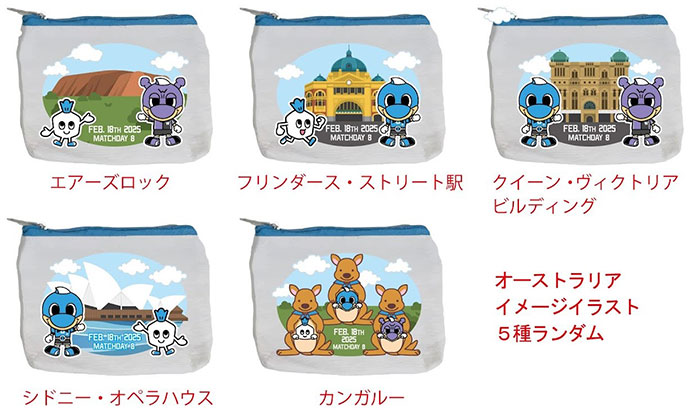 | 種類 | チャーム:カンガルーとマスコット(選手・マスコットはランダム) ポーチ:5箇所ランダム |