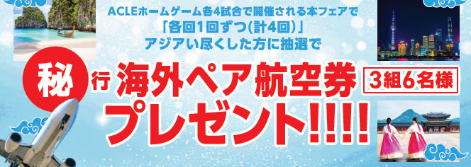 さらに!! ACLEホームゲーム全4試合に来場された方の中から抽選で3組6名様に、“秘”行海外ペア航空券をプレゼント!!
