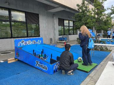 | ルール | ・1人2球チャレンジ ・湾曲した壁にボールを蹴り、壁にボールを転がして反対側のピンを倒そう! ・倒した本数に応じてACLE限定のトレカをプレゼント! |