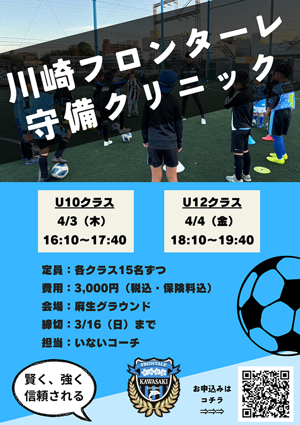 「4/3(木)、4/4(金) 川崎フロンターレ 守備クリニック」係