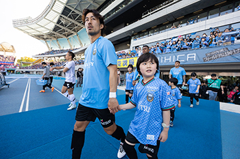 | 実施内容 | ウィズハンド:川崎フロンターレスタメン選手と手をつないで入場 フラッグベアラー:選手入場時に旗を持って入場 |
