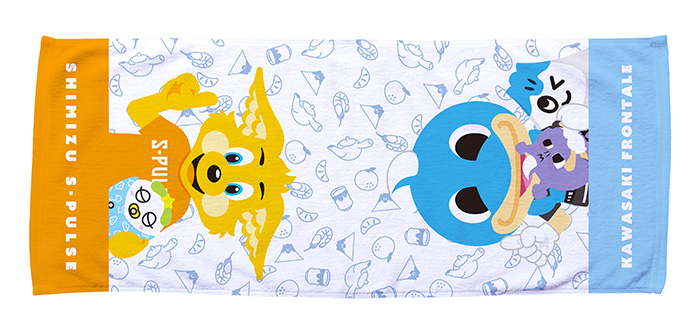 川崎フロンターレマスコットと清水エスパルスのパルちゃんがデザインされたフェイスタオルです。