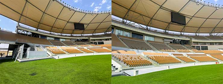 ※組み合わせ抽選会の結果、ホーム扱いの試合となるため、メインスタンドから見て左側ゴール裏が川崎フロンターレ応援エリアとなっています。
