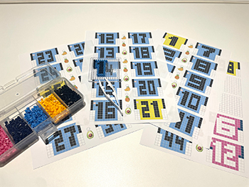 毎回大人気の手作りコーナー。アイロンビーズを並べて描く推し選手の背番号と、ドールランド春にちなんだフルーツモチーフのチャームを組み合わせたオリジナルキーホルダーが簡単に作れます。フロンターレカラーだけでなく、対戦相手となるセレッソ大阪さんをイメージしたカラーのビーズもご用意しました!!