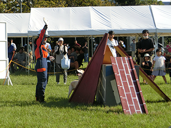 | 時間 | ①12:40~13:10(災害救助犬実演) ②14:00~14:30(アジリティ実演) |