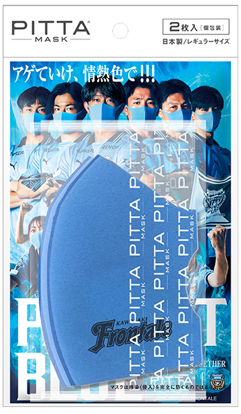 「声援を着けよう。」をコンセプトに、選手とサポーターが一体となり、川崎の街とスタジアムを青で染め上げるための応援マスク『PITTA MASK FRONTALE BLUE』を開発していただきました。