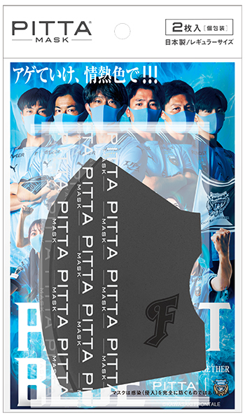 特別な PITTA MASK は、ユニフォームとも相性抜群のフロンターレブルーに、クラブロゴを配置したシンプルなデザインです。本年より、スタジアムでも普段使いにも着用しやすいグレーをWEBショップ限定で販売開始いたします。