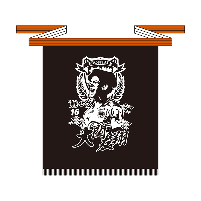 サポーターが選手へ向けて歌うチャント。想いを込めて作られたそのチャントで使用されているワードを使い、デザインされたフェイスタオルです。大関選手のチャントで使用されている“魅せろ”を大きくデザインしています。