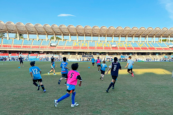 等々力のピッチでスクールコーチたちと一緒にサッカーを楽しみましょう!!