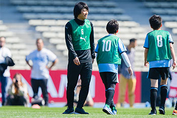元プロ選手の技術、サッカーの楽しさなどを提供し、子どもたちと一緒にサッカーをいたします。