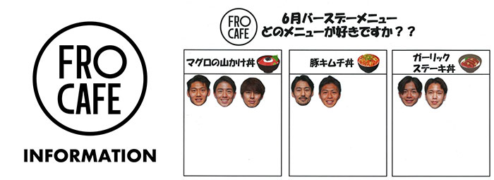 上記メニューをご注文された方のみ、お好きな選手の「FRO CAFEオリジナルキーホルダー」を550円(税込)でご購入いただくことが可能です。