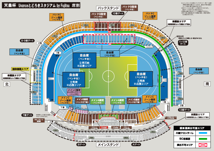 その他詳細は、「特定非営利活動法人川崎市サッカー協会オフィシャルウェブサイト内「天皇杯3回戦 川崎フロンターレvs SC相模原の応援エリアおよび横断幕の掲出箇所について」をご確認ください。