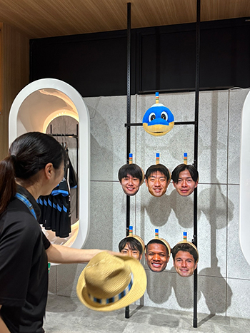 | ルール | 1. 3回ハットを飛ばして、選手やマスコットの頭に被せる(ふろん太は難易度MAXです!) 2. 成功した回数により、景品をGET!(難易度MAXのふろん太が成功した場合はふろん太賞のみお渡しです) ◇ふろん太賞 選手直筆サイングッズなどレアグッズプレゼント ◇3回(ハットトリック賞)、1~2回(ゴール賞)、0回(シュート賞) ハットを被せた回数によってフロンターレグッズをGET!! ※景品の個数が異なります。 |