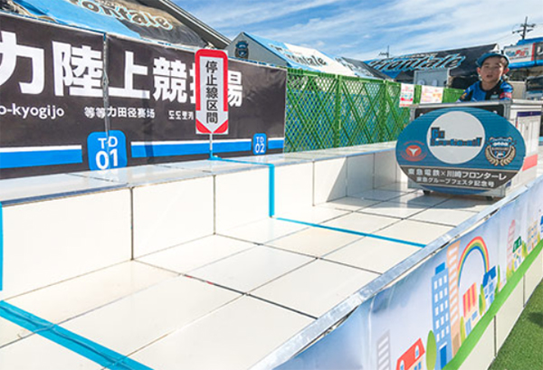 フロンターレオリジナル電車アトラクションの「リアル電車deゴー」が今年も登場します! 運転士が乗った電車を押して、決められた場所にピッタリ停まれば豪華賞品をプレゼント。