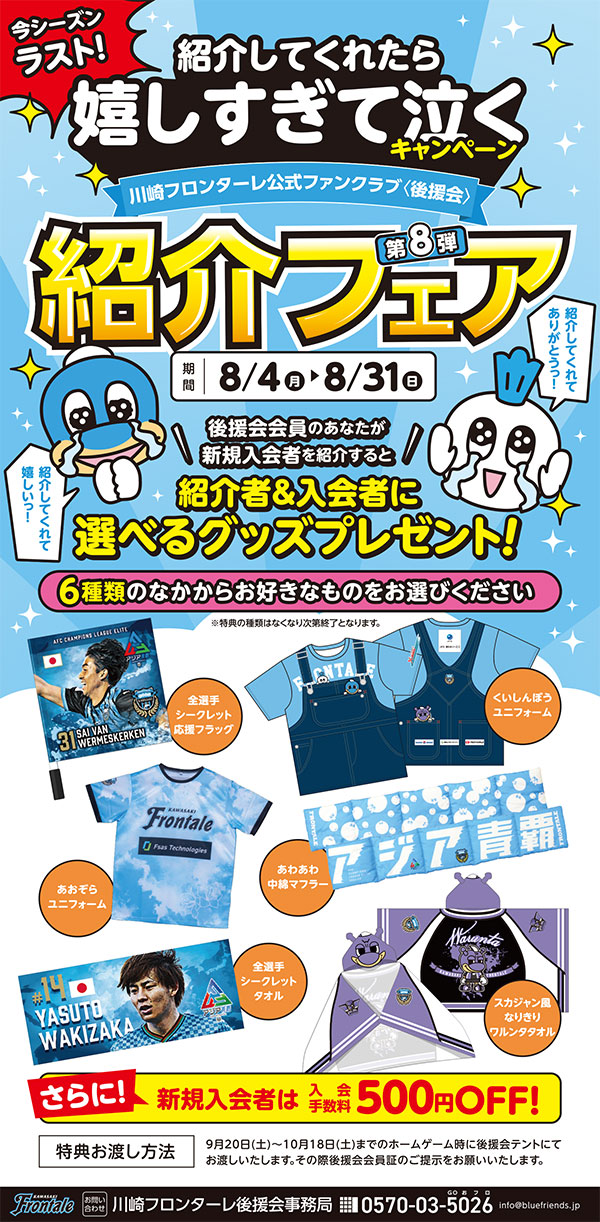 2025川崎フロンターレ後援会会員:1回500円 一般:1回600円